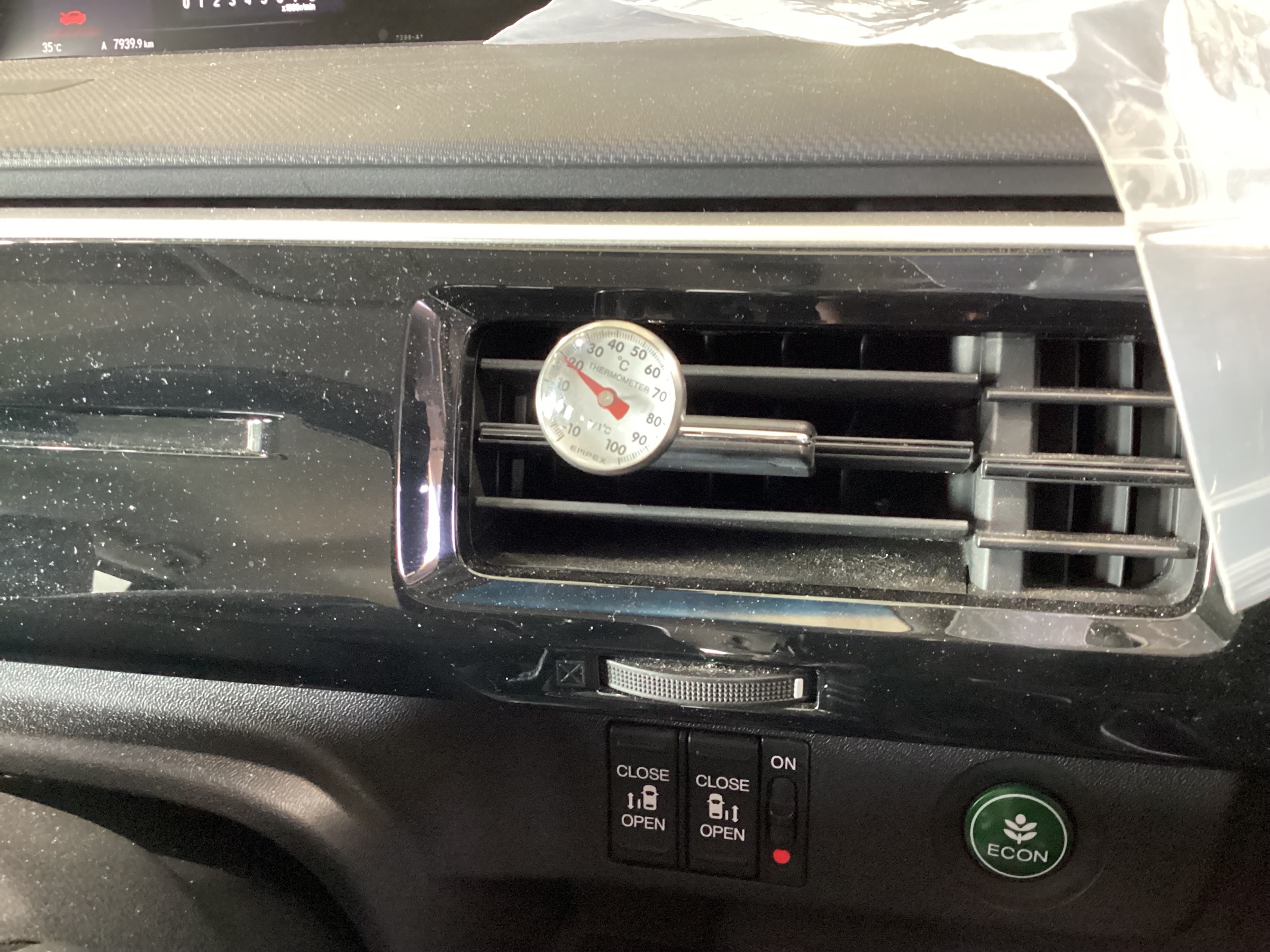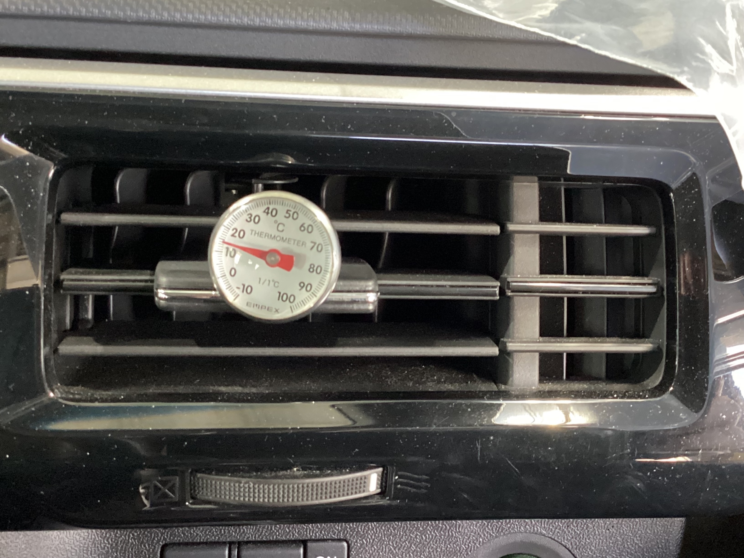 走行中は、コンプレッサーの回転数も上がりますので、もっとエアコン温度が冷えます。