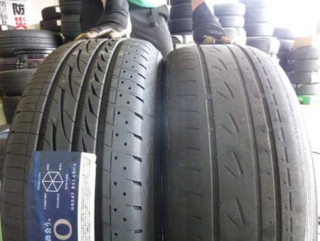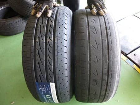 同じサイズの新品タイヤと比べているのに、一回り小さく見えます。