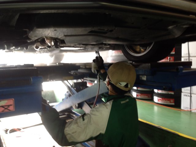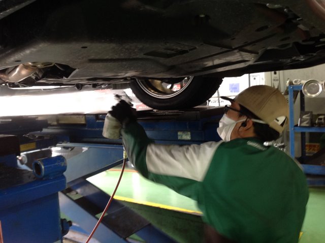 今日も二瓶スタッフがお客さまの車の下を、プシューーっとね。