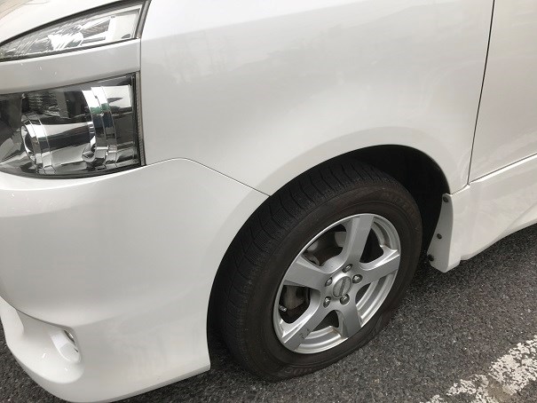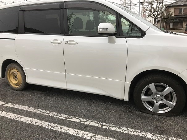いたずらでタイヤの横に鋭いもので穴があいており、