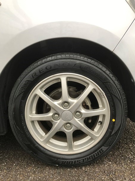 ガソリンスタンドでタイヤのひび割れしていると指摘されたようで、拝見させて頂くとヒビではなく割れているような状態でした。まだ3年しか使われていないとの事でしたが、もともと装着されているタイヤも低燃費タイヤでしたので同等クラスということでGRレジェーラを購入して頂きました!