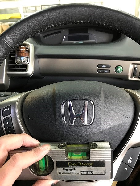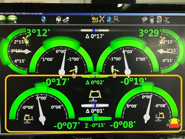 これをしっかり規定値に調整し、タイヤが真っ直ぐ向くようにいたしました。