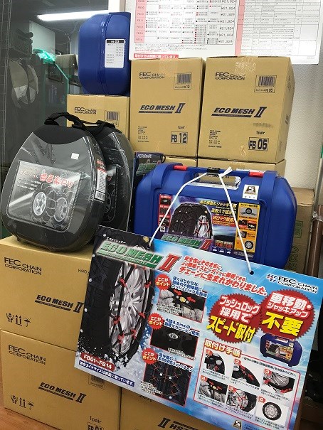 雪が降ってからチェーンを付けようとしても、慣れていなかったり、まだ悪天候の中でつけるので腕がびちょびちょになったり、ゴムチェーンが硬かったりして付けづらかったりしますので、事前に装着の練習をお勧めいたします!