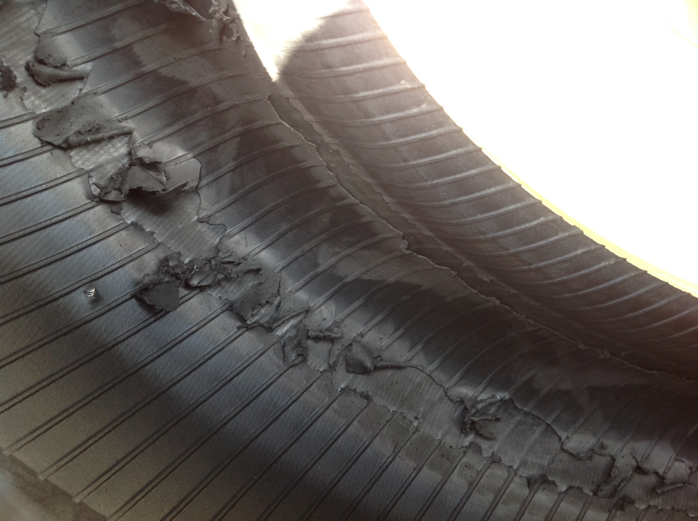 タイヤのカスがボロボロと…