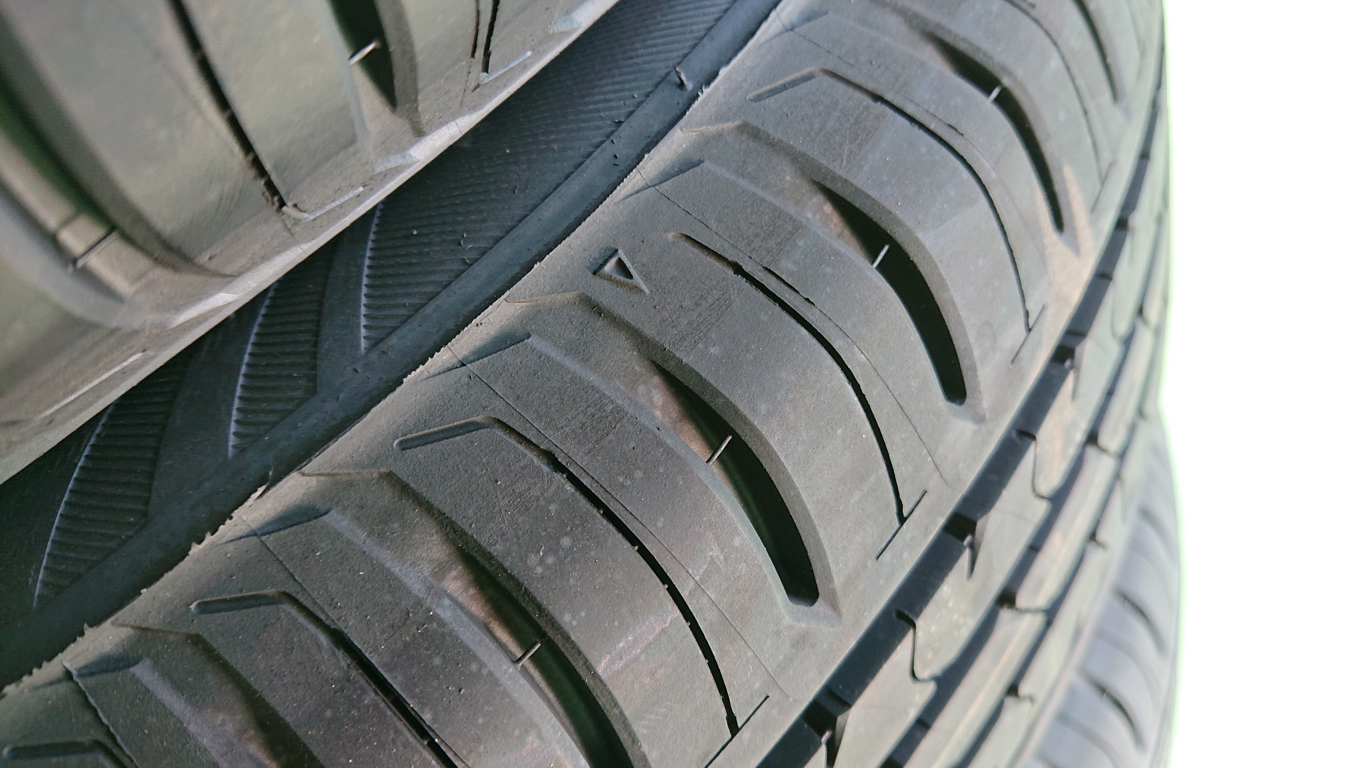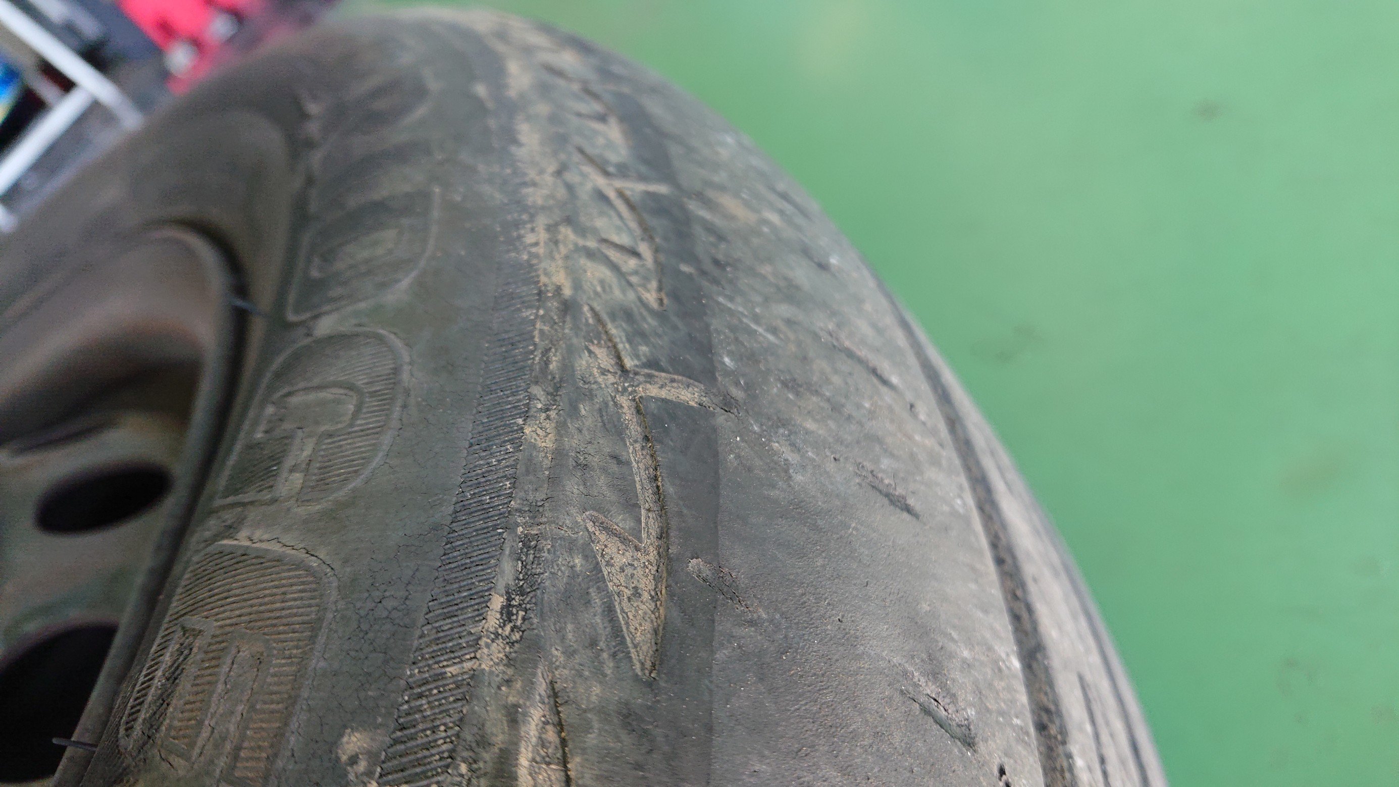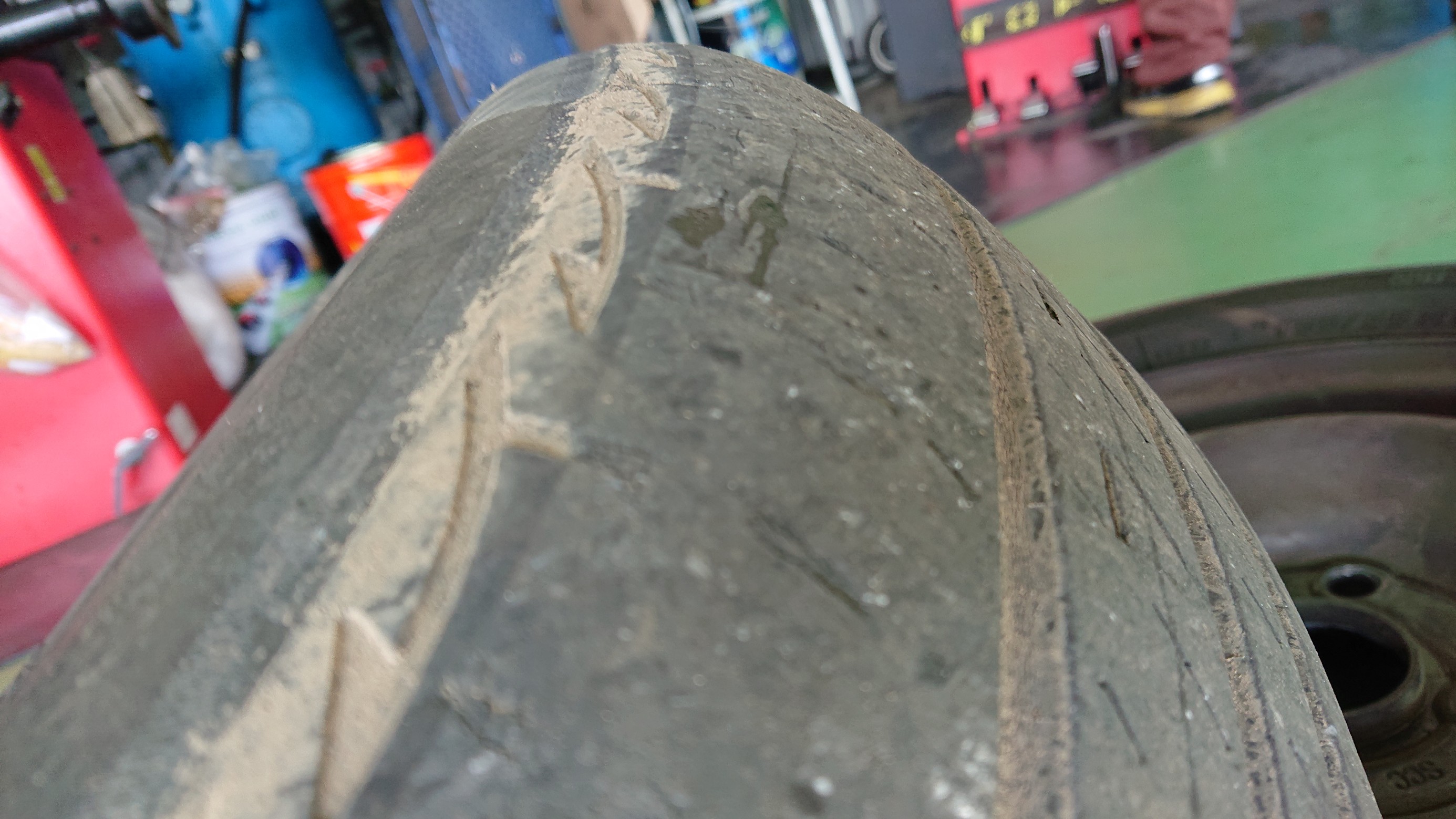 このまま摩耗が進むと、この丸みを帯びた部分からタイヤの中のワイヤーが…