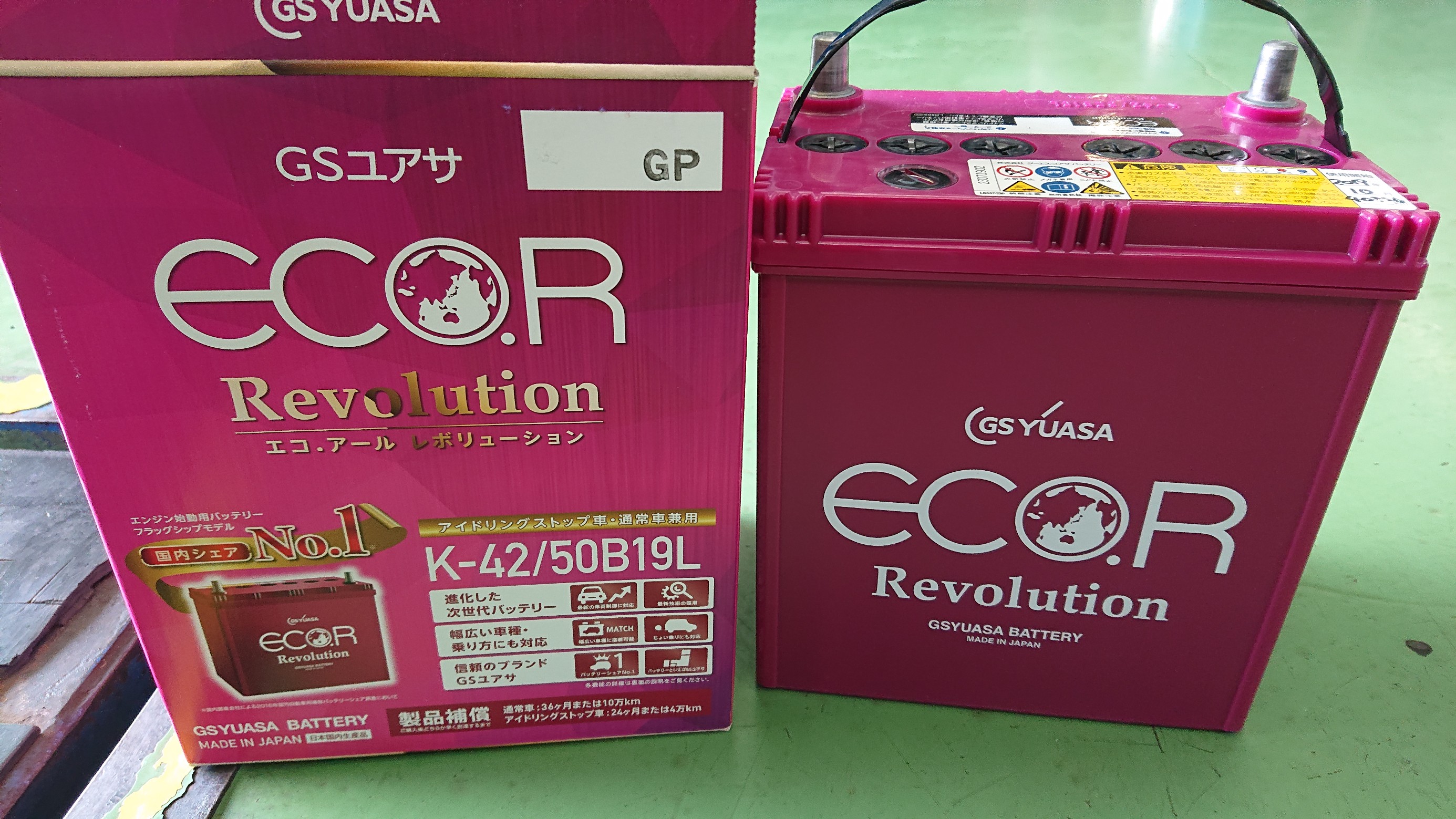紫ボディが特徴的な、高性能バッテリー「GSユアサ ECO.R Revolution」