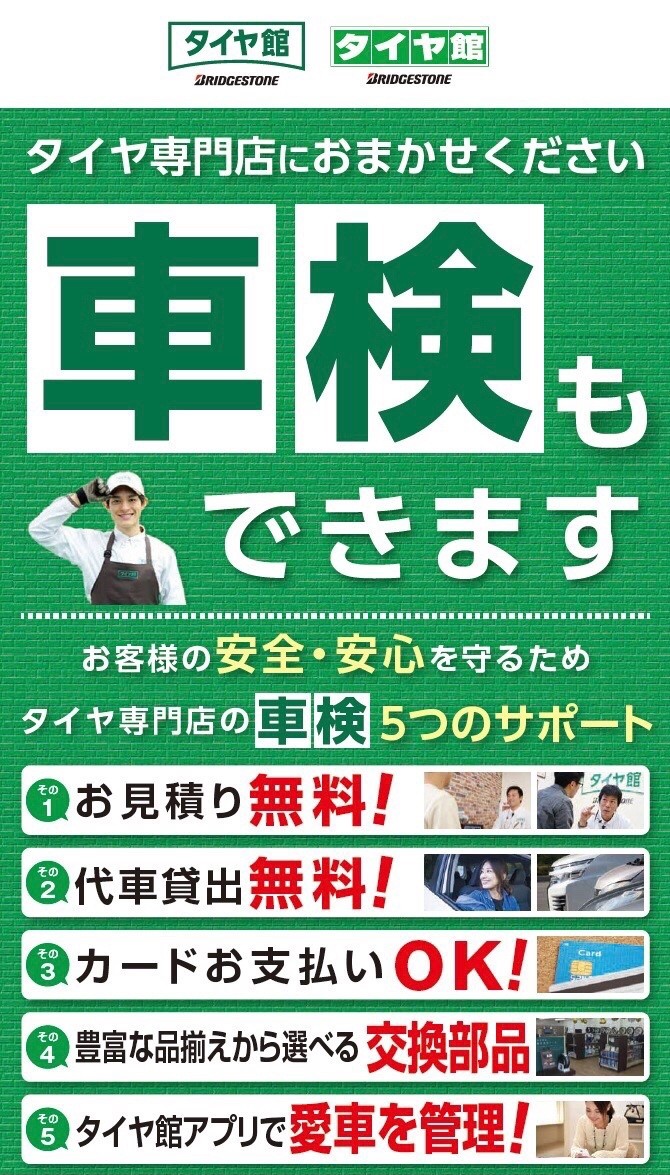 皆さん、こんにちは!! "タイヤ館 西船橋店"です! 2年に一度の… 【クルマの健康診断】 車検はタイヤ館もやってます! まずは無料見積りを! 2025年4月より、 車検満了日の2ヶ月前から 受けられるようになりました! ➡︎新しい車検証の有効期間はキープされますので、 さらに余裕を持って受けられ...