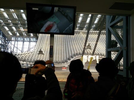 エレベーターで上まで上がって修復の様子を間近で見られるっていう事には