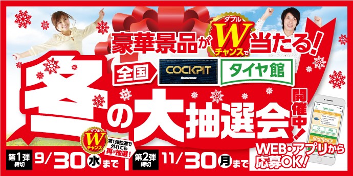 期間中に「 タイヤ館 アプリ 」または「 WEBサイト 」から