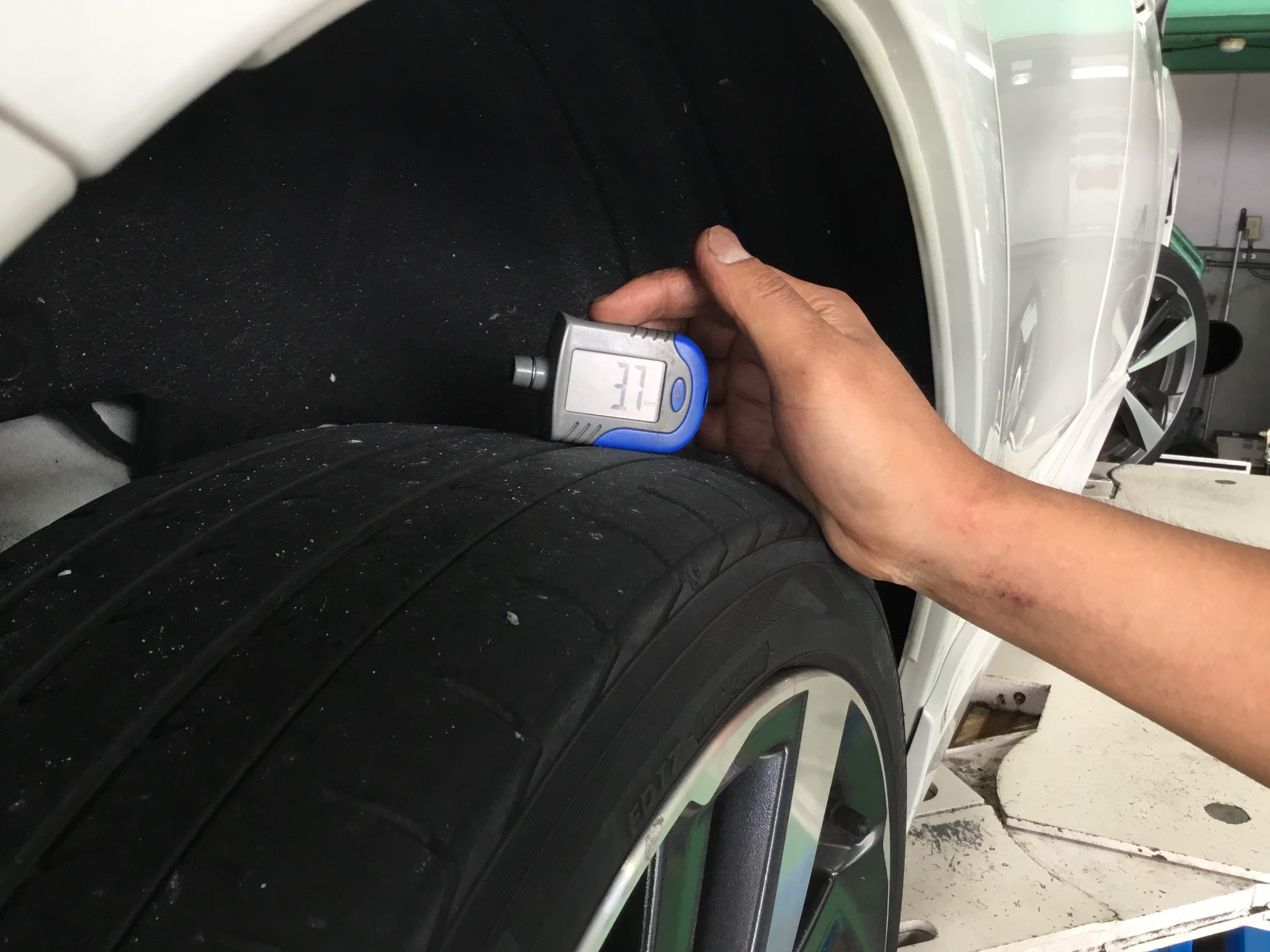 特殊な機械を使い、タイヤ全体の残り溝はもちろん、現状のタイヤ状況を確りお伝えさせていただきます。