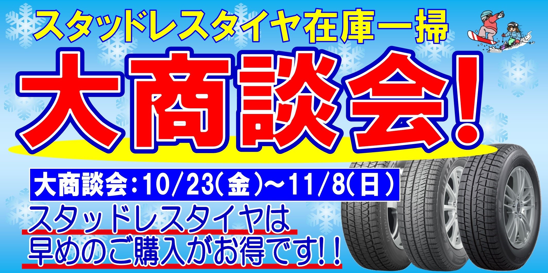 スタッドレスタイヤ大商談会は本日を持ちまして終了とさせていただきます。
