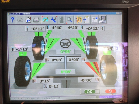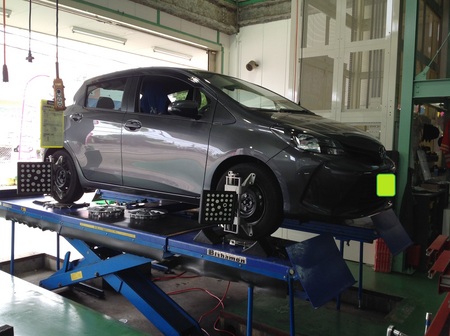 本日は事故で足廻りを交換されたお車のアライメント調整を