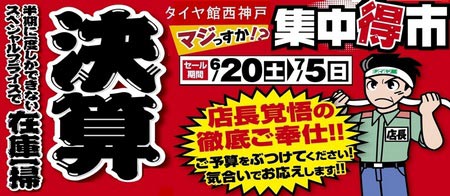 タイヤ館西神戸では、半期に一度の決算大売出しを開催中です(^O^)/