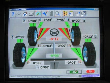 今回はタイヤ交換とお約束のアライメント調整をさせていただきました。