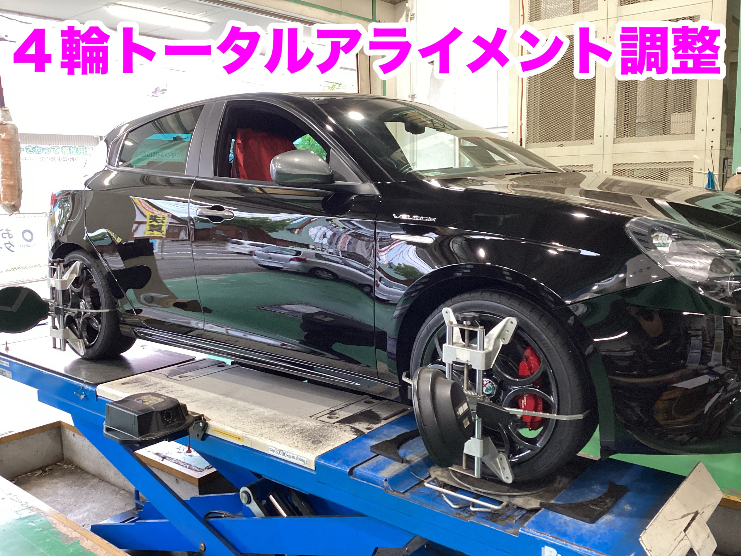 4輪アライメントの同時作業を
