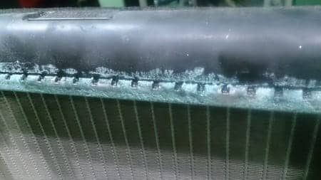 ラジエターのコアとタンクのかしめ部分からクーラントが