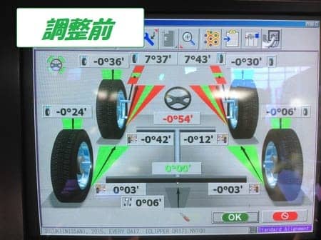 足回りを交換し車高が変化するとタイヤの角度もずれてしまうので