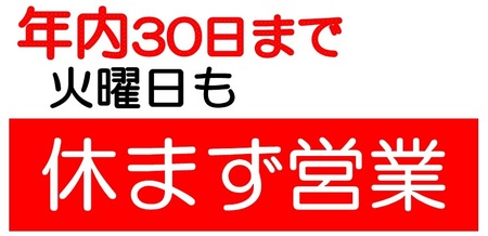 又、年内は30日まで休まず元気一杯営業致しますので
