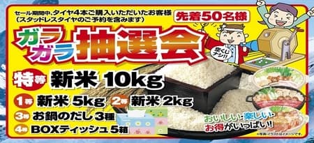 セール期間中タイヤ4本ご購入でガラガラ抽選会を実施致します!