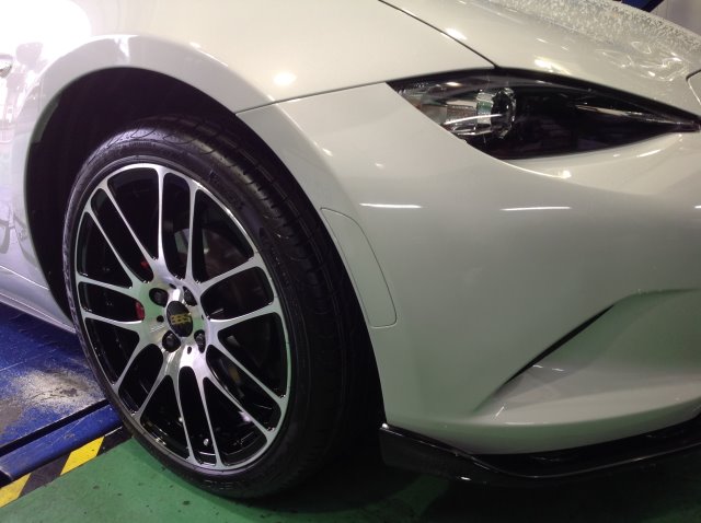 シンプルなホイールデザインで、現行マツダロードスターの美しいデザインを崩すことなく、