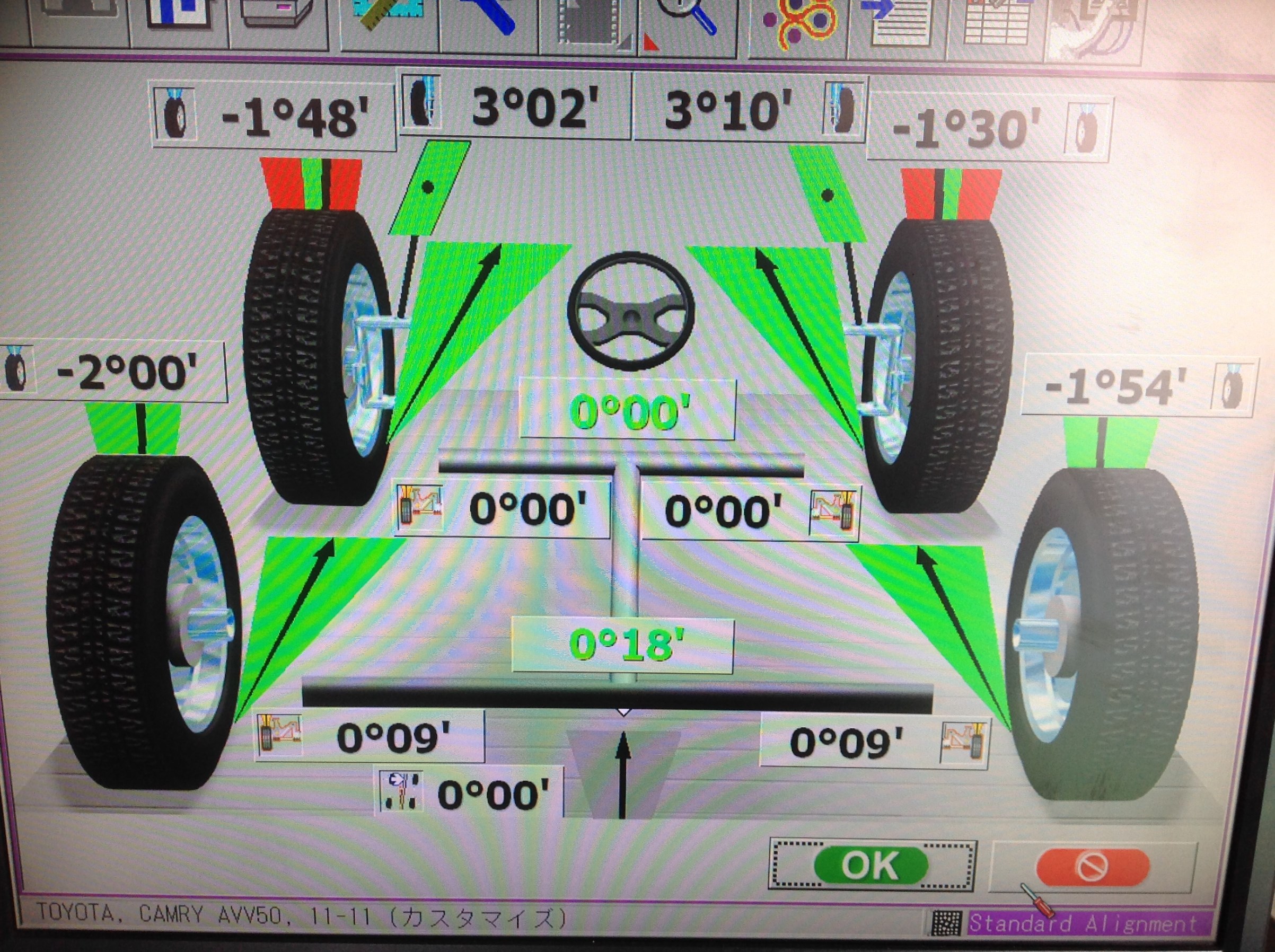 バッチリ調整させて頂きました(^_^)カムリは足回りもいいお車で4輪とも調整出来ますので