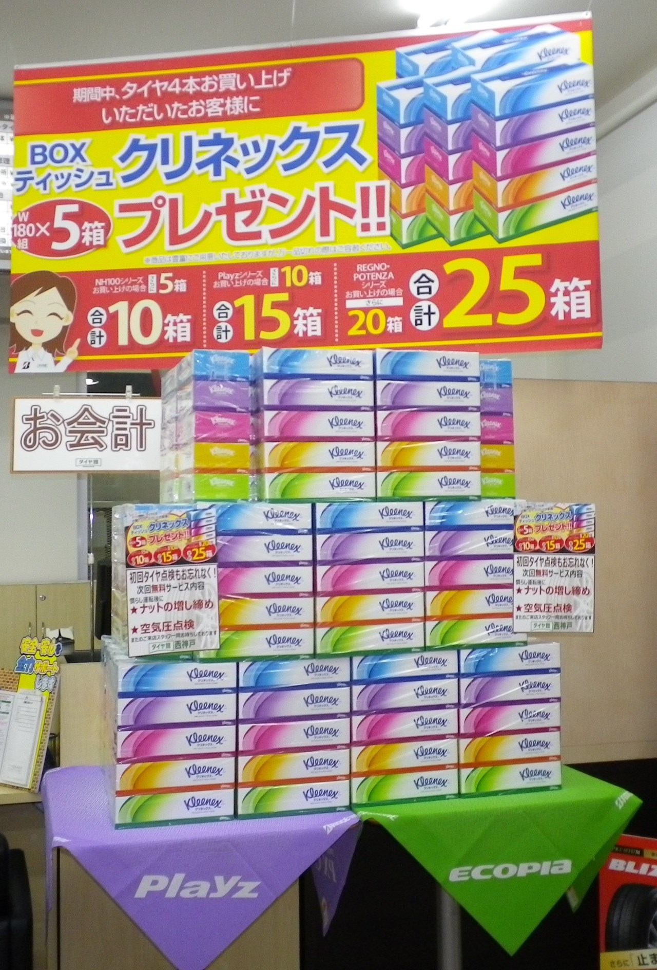 まだまだ『クリネックス BOX ティッシュ』もありますので、是非この機会にご来店下さい(^_^)