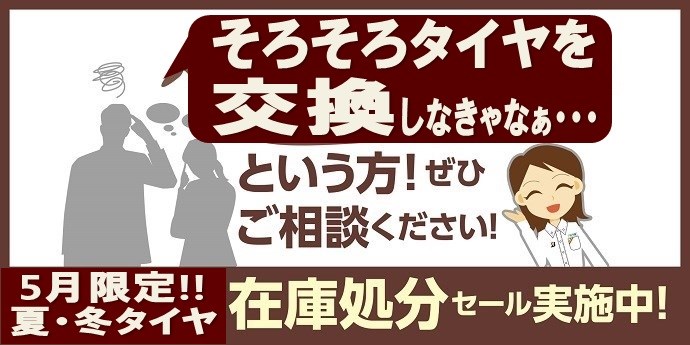 5月限定で、夏・冬タイヤ『在庫処分 セール』実施中です!!
