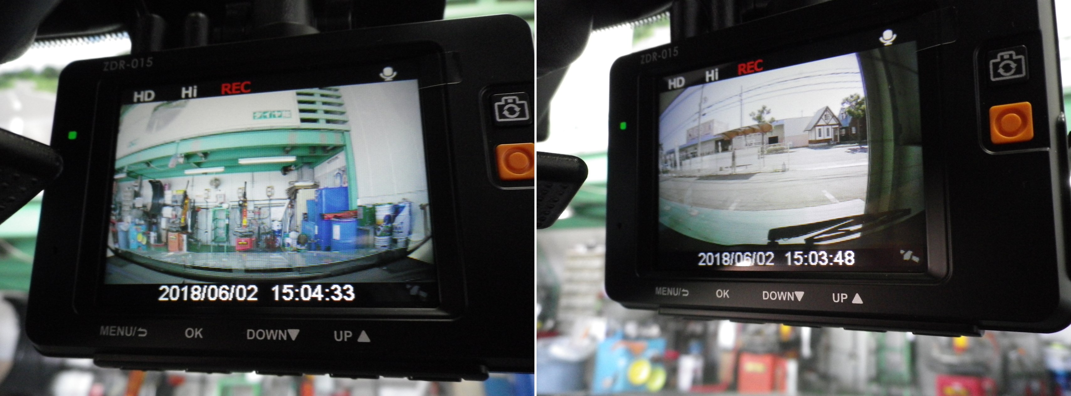 本体液晶で、前側のカメラの動作確認とカメラを切り替えて、後ろ側のカメラの角度チェックも終了しました。