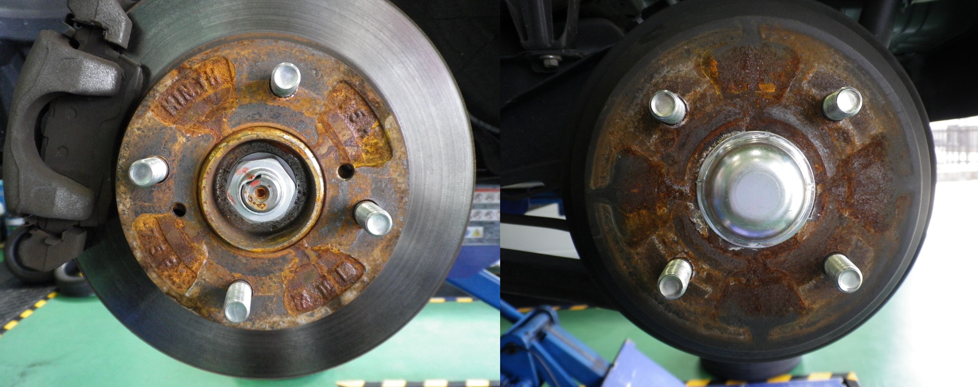 タイヤ交換などで、ホイールを外すとハブ廻りがサビてしまっているお車を多く見かけます。
