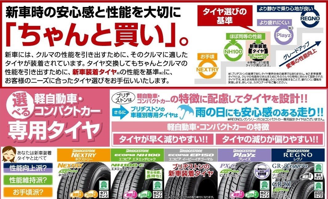 お客様のタイヤが安全・安心・快適に運転できるか、タイヤ館 西神戸では「残り溝」「空気圧」「異常摩耗」「ひび割れ」「キズ」を無料でチェックしております。