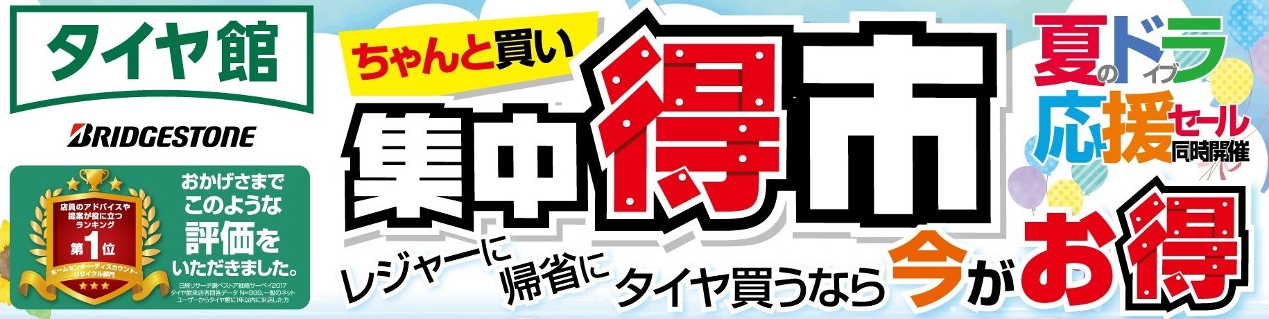 ☆『ご好評につき、7月28日(土曜)より “集中得市”&“夏のドライブ応援SALE” 第2弾開催決定!!』☆ ポスト 2018年7月23日 いつも、タイヤ館 西神戸をご利用頂き、ホームページをご覧頂きまして、誠にありがとうございます。 昨日までの『集中得市』SALEが大賑わいの中、終了してしまいましたので、 ご好評につき、7月28日(土曜)より『集中得市』&『夏のドライブ応援SALE』 第2弾を同時開催致します! 夏休みのレジャーや帰省の前にタイヤを買うなら今がお得です☆ セール内容は、詳細が分かり次第ご連絡致します☆ 明日、7月24日は定休日となりますが、7月31日(火曜)は通常営業致します☆ カテゴリ:お知らせ