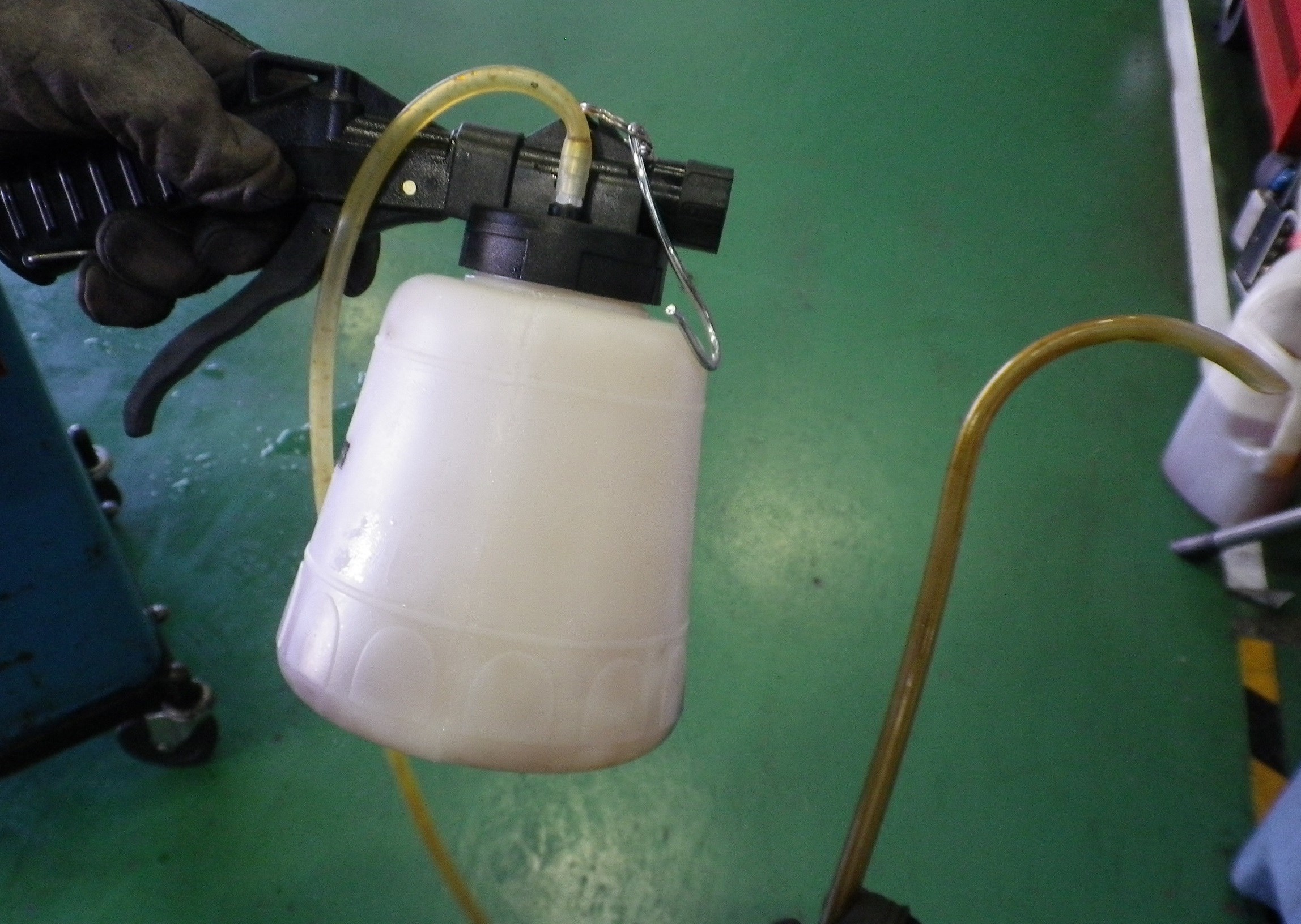 ドレンボルトを外してから、廃オイルが線状になったら、、、この『オイルブリーダー』の登場です!!