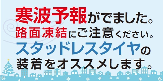 冬将軍到来!? ポスト 2018年12月6日 いつもタイヤ館西神戸のWEBをご覧いただき有り難うございます。 皆様なんと!! 今週末に大寒波が到来します。 近畿圏でも最低気温が3℃以下の予報がでております。 (気象庁のHP情報より) 皆様スタッドレスタイヤ(冬タイヤ)のご準備はお済ですか? タイヤ館西神戸では12月1日から「決算セール」を開催しております。 開催期間は12月1日(土)から24日(月) 2018年最終徹底売り尽くしです。 この機会にスタッドレスタイヤのご用意を!! カテゴリ:お知らせ