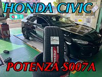 タイヤ館西神戸店のHPをご覧いただき ありがとうございます!! タイヤ交換のご紹介ですよー!! 今回はこちら!! HONDA CIVICに POTENZA S007A 235/40R18を装着させて頂きました!! POTENZA S007Aの特徴は 1.優れたドライ性能 高剛性ハンドリングシート、S007A専用サイド補強、 S007A専用コンパ...