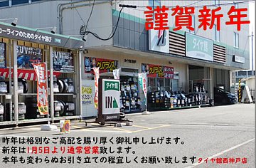 いつもタイヤ館 西神戸のホームページを ご覧いただきまして、誠にありがとうございます!! 本日は年内最後の営業日となります。 2025年もたくさんの方のご利用、 誠にありがとうございました!! 2026年1月5日(月)より 通常営業となります!! ご不便をおかけしますが、 よろしくお願いいたします。