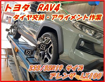 【作業事例】「トヨタ RAV4」夏用タイヤ交換・アライメント作業(ブリヂストン ALENZA LX100)