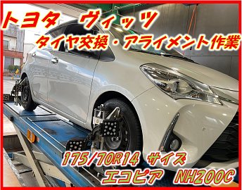 作業事例】「トヨタ ヴィッツ」夏用タイヤ交換・アライメント作業(ブリヂストン エコピアNH200C)