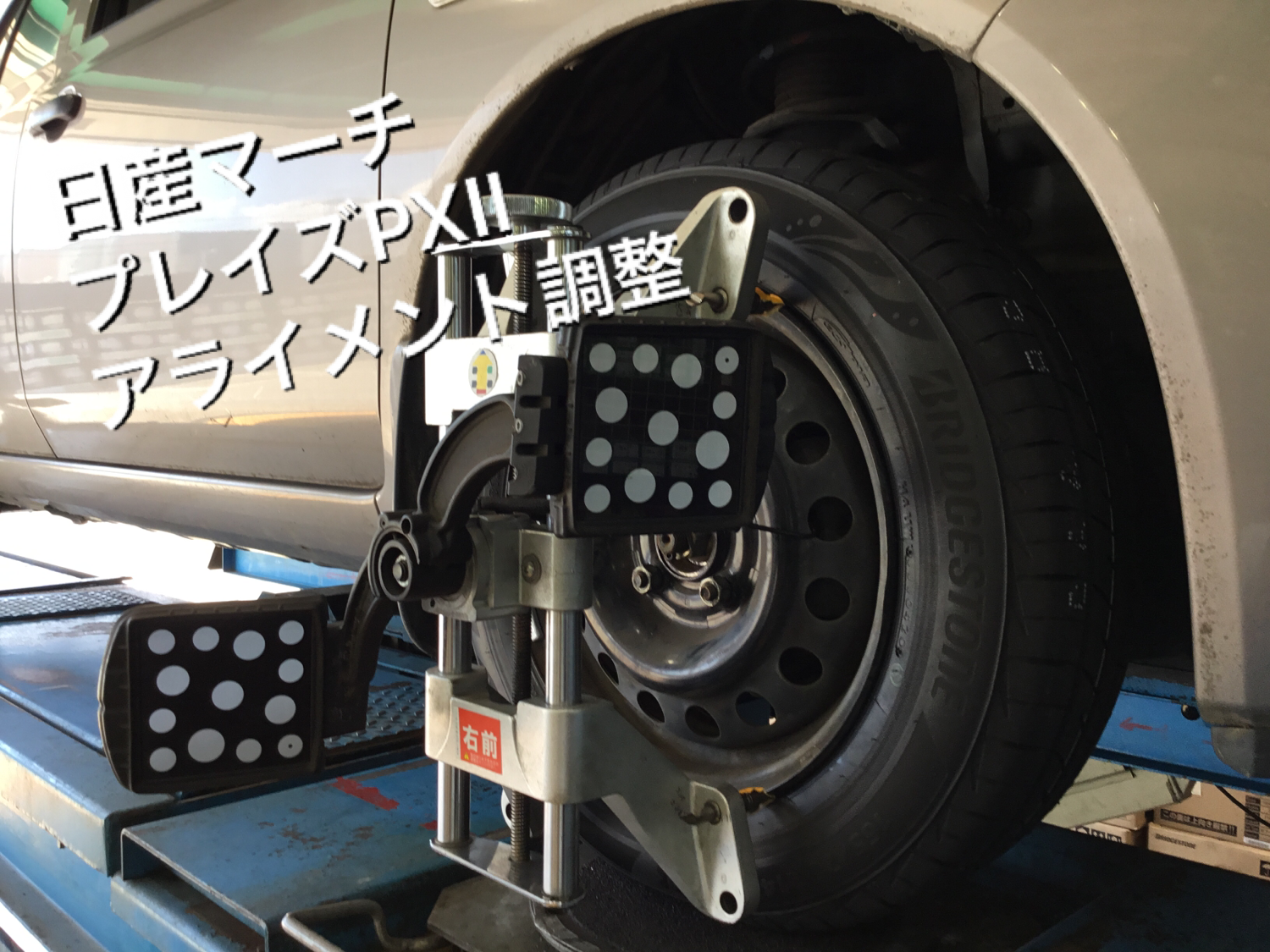 日産マーチ【AK12】にプレイズPXⅡお取り付け&アライメント調整をさせて頂きました!