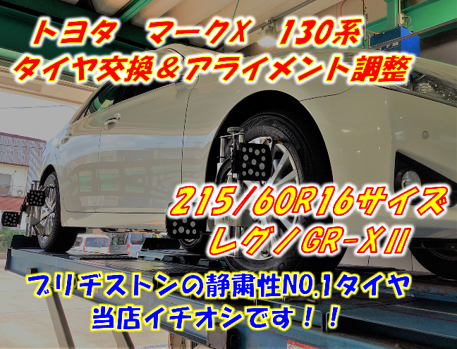 【タイヤ交換&アライメント】レグノGR-XⅡ 215/60R16サイズ トヨタ マークX 130系