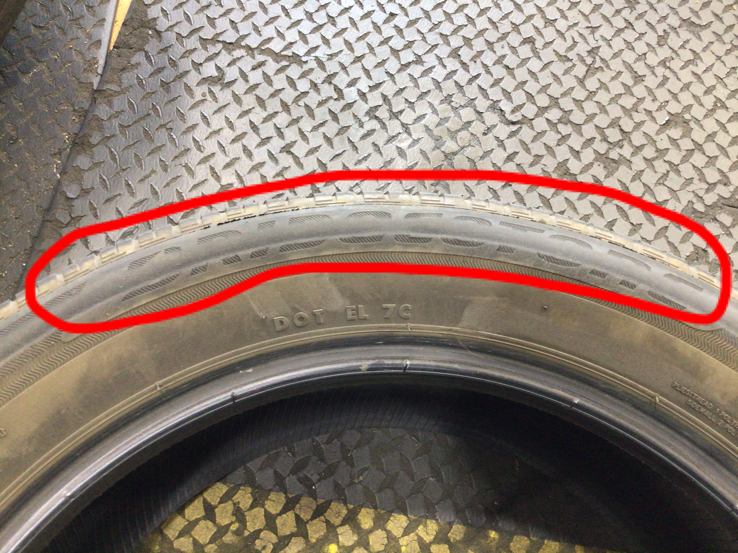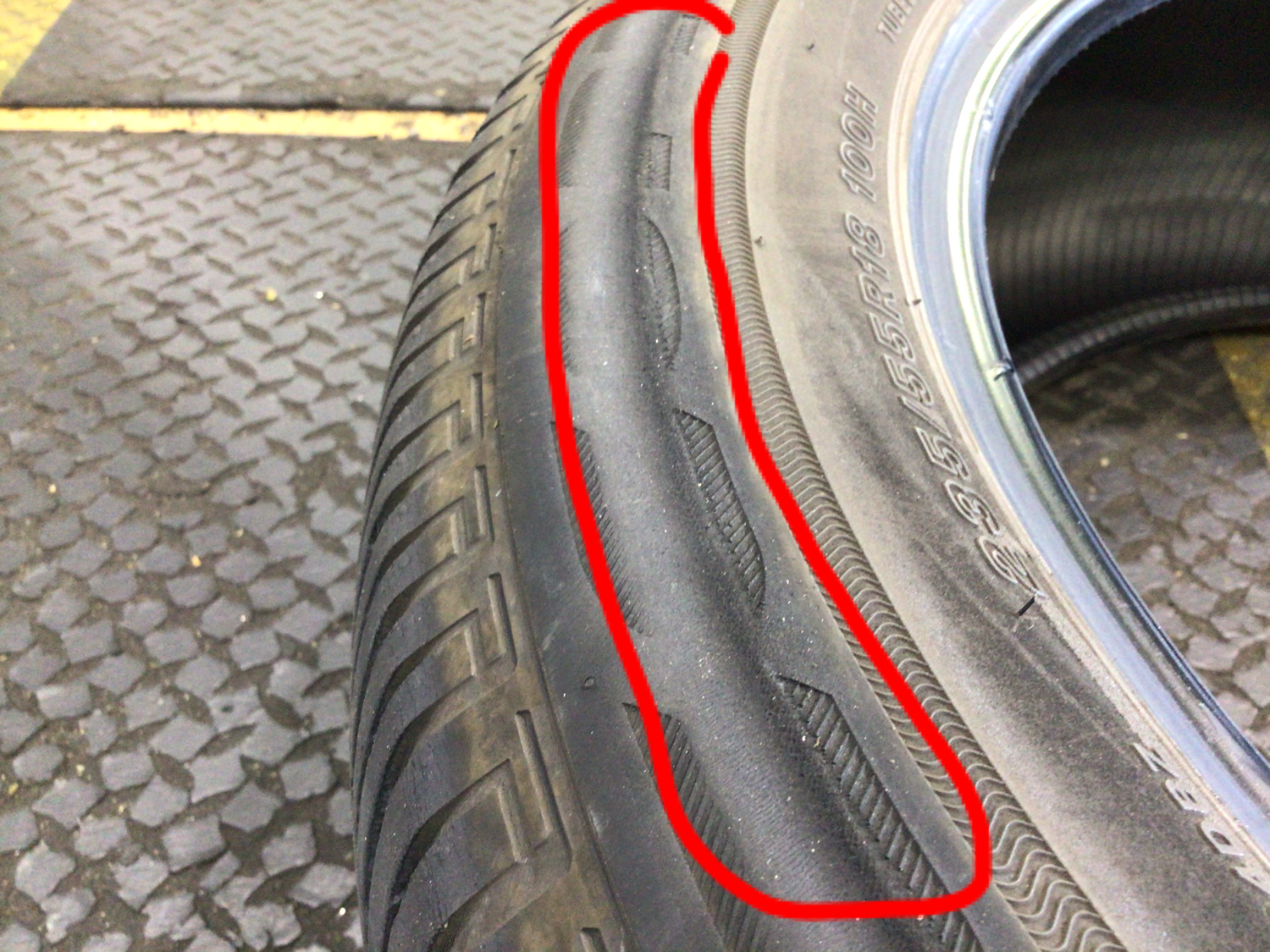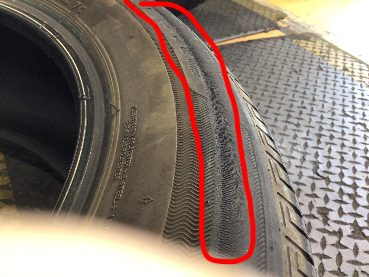 パンクして低空気圧で走行してしまい、タイヤのサイドウォールの