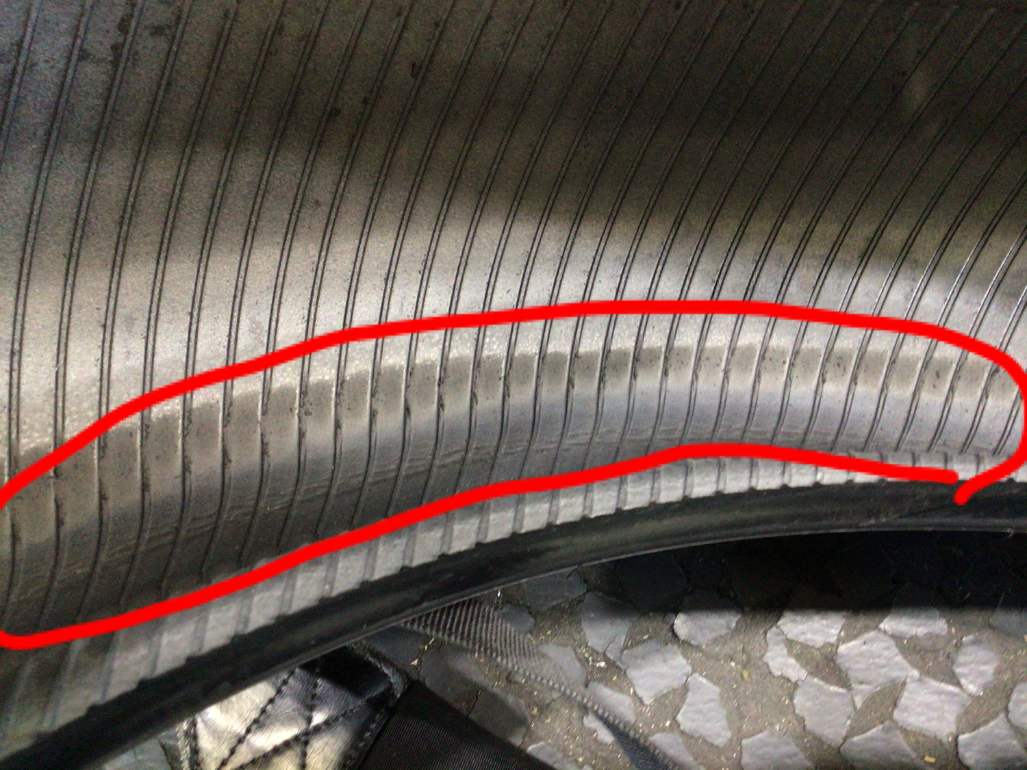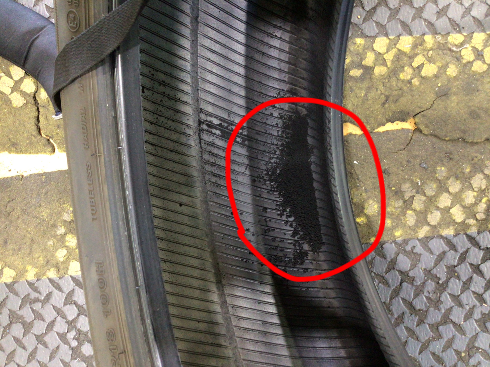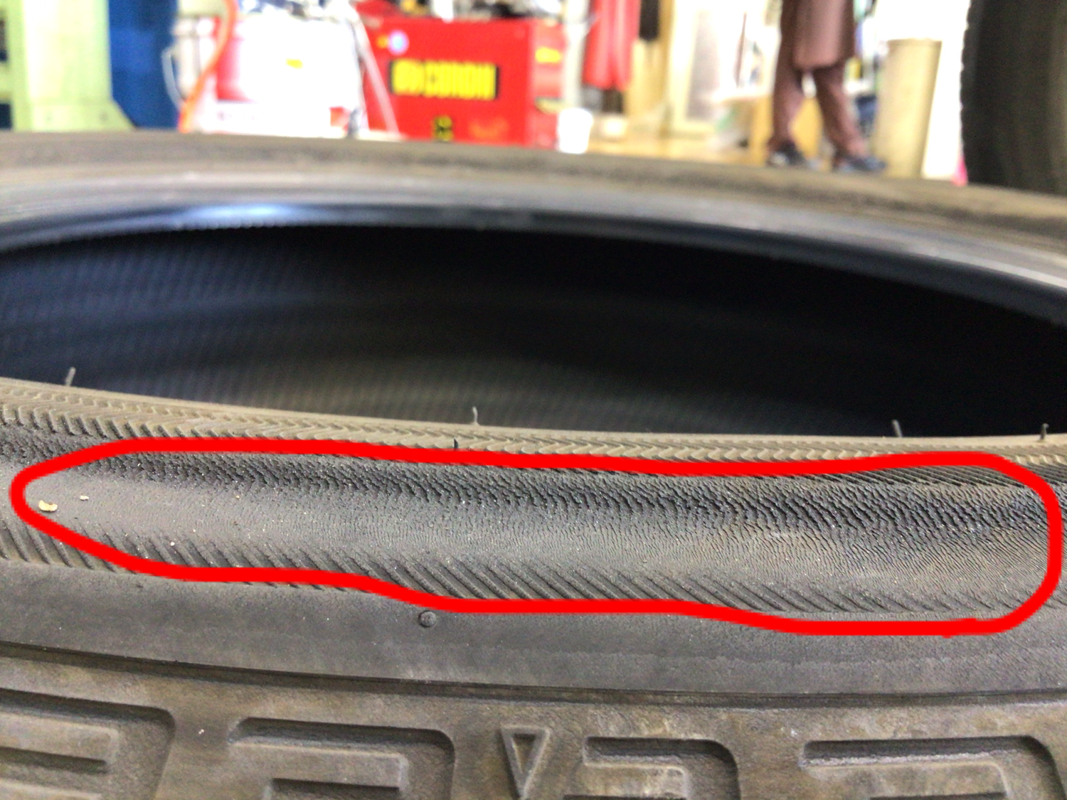 パンクして低空気圧で走行してしまい、タイヤのサイドウォールの