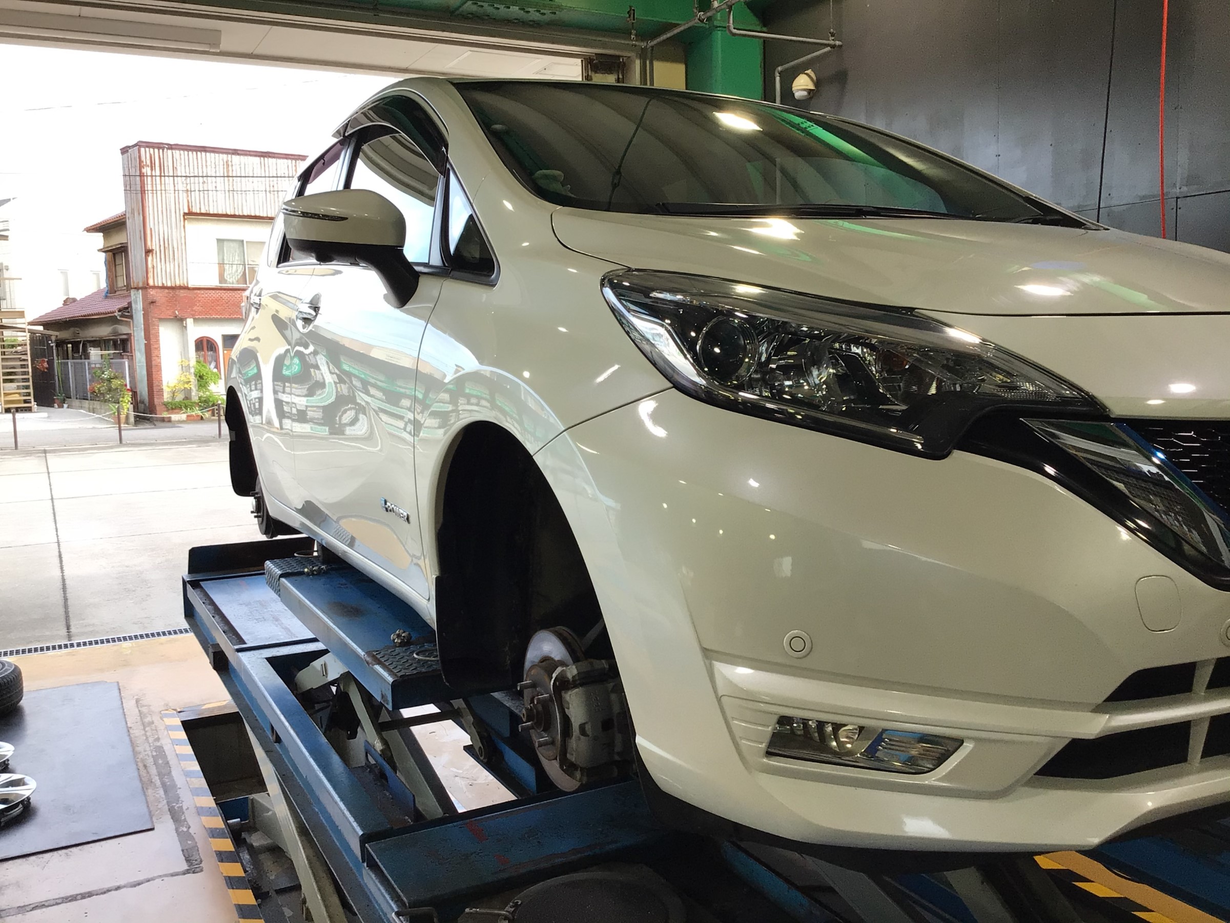 異常値で調整が必要な場合は、熟練スタッフがクルマの下に潜り