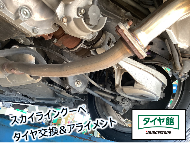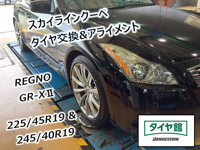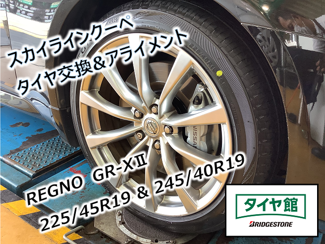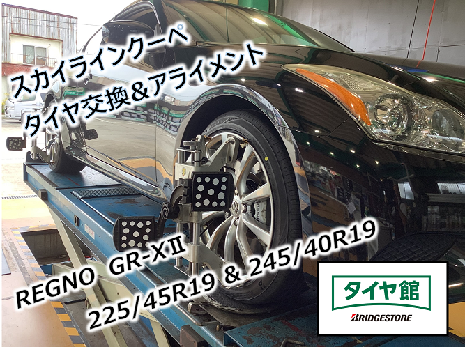スカイラインクーペ レグノGRーXⅡにタイヤ交換&アライメント調整させて頂きました!