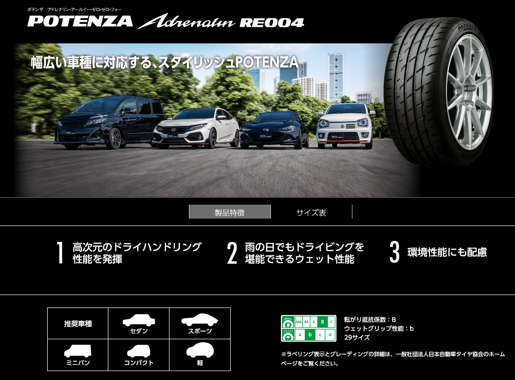 タイヤの紹介【ポテンザ アドレナリン RE004】