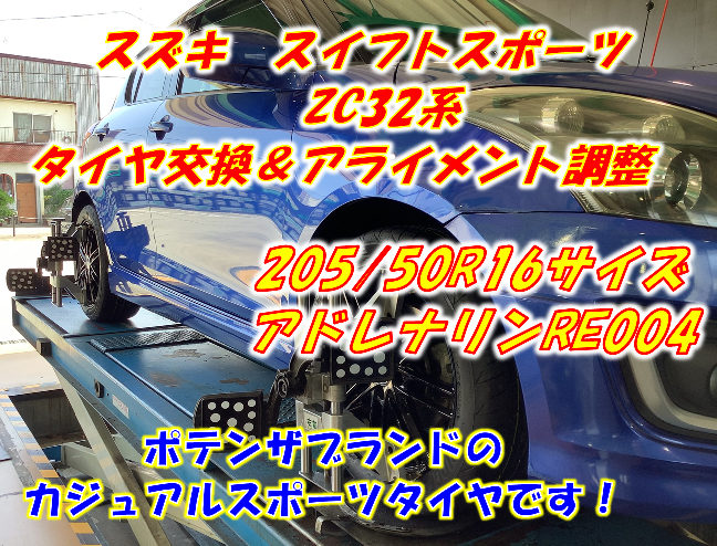 【タイヤ交換&アライメント調整】アドレナリンRE004 スズキ スイフトスポーツ ZC32系