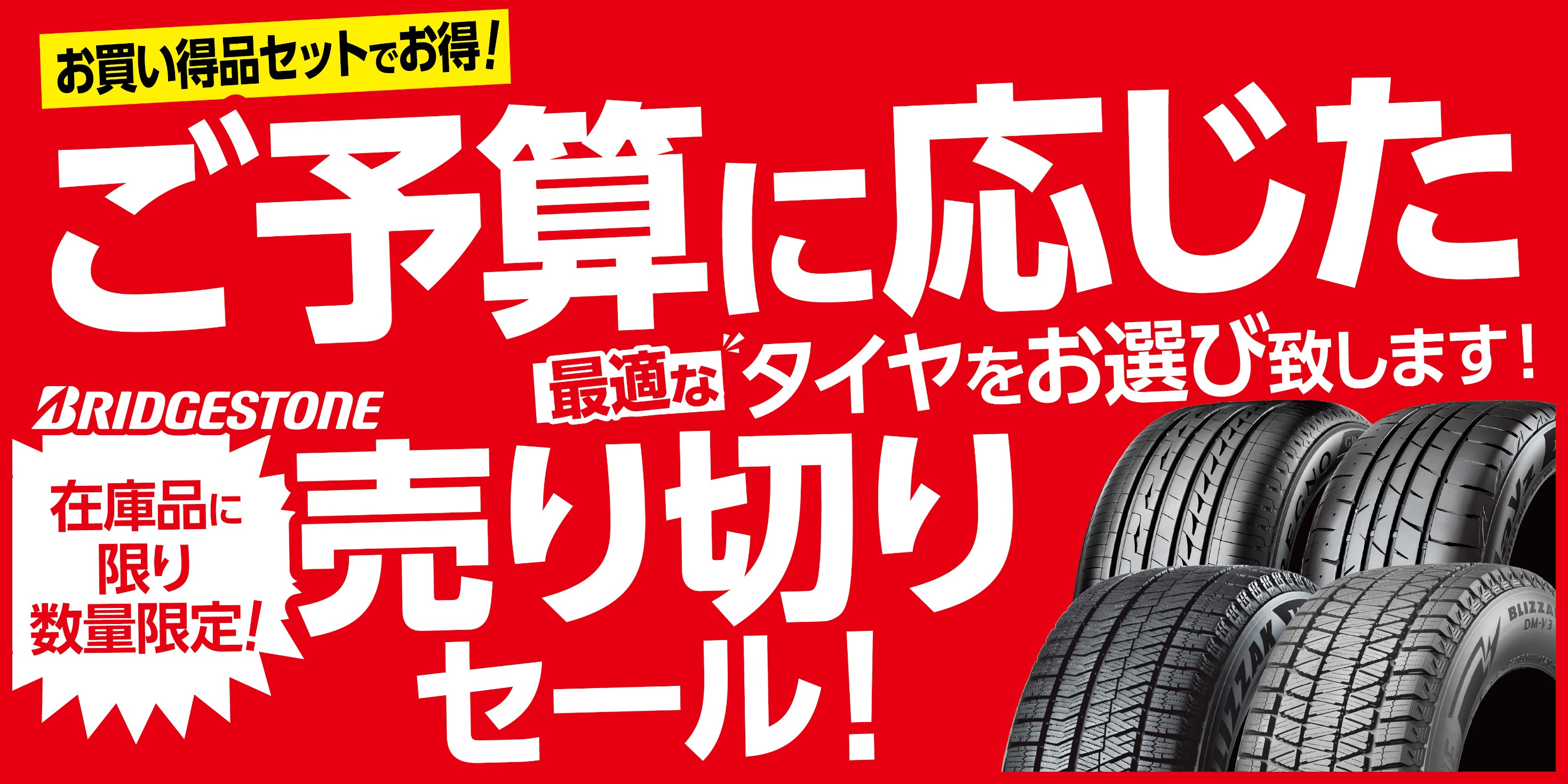 只今、夏タイヤも冬タイヤも、現品限りの在庫品売り切りセール中です。