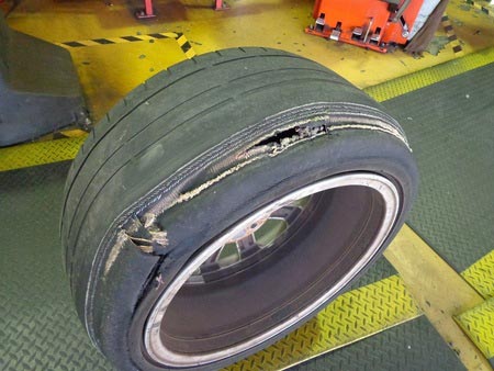 今回は片方のタイヤが走行中に破裂し、タイヤがぐちゃぐちゃになってしまいました。