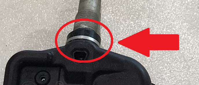 この黒色の四角部分と灰色の棒が出ているのがTPMSのセンサーです。