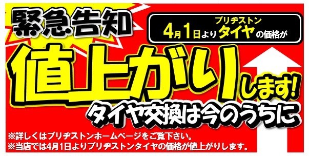 4月1日からタイヤが値上がりしますので、今がお買い得になっているます!!!
