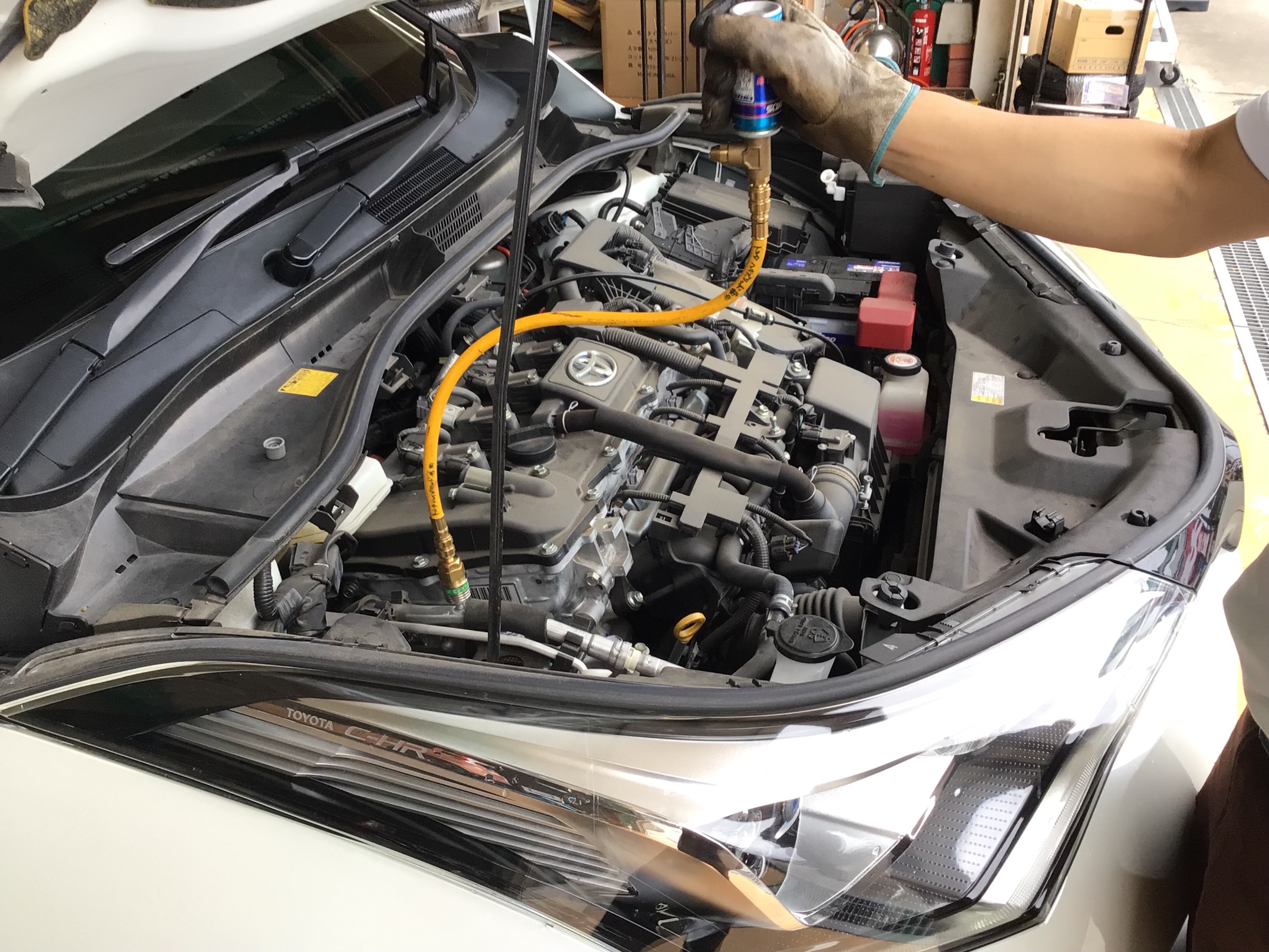 本日も、当店お馴染みエアコン添加剤の作業でございます!!